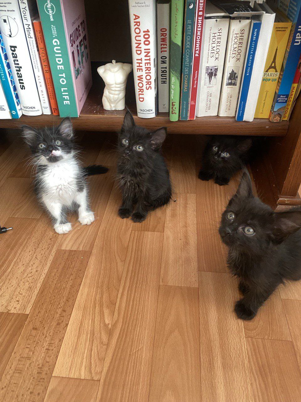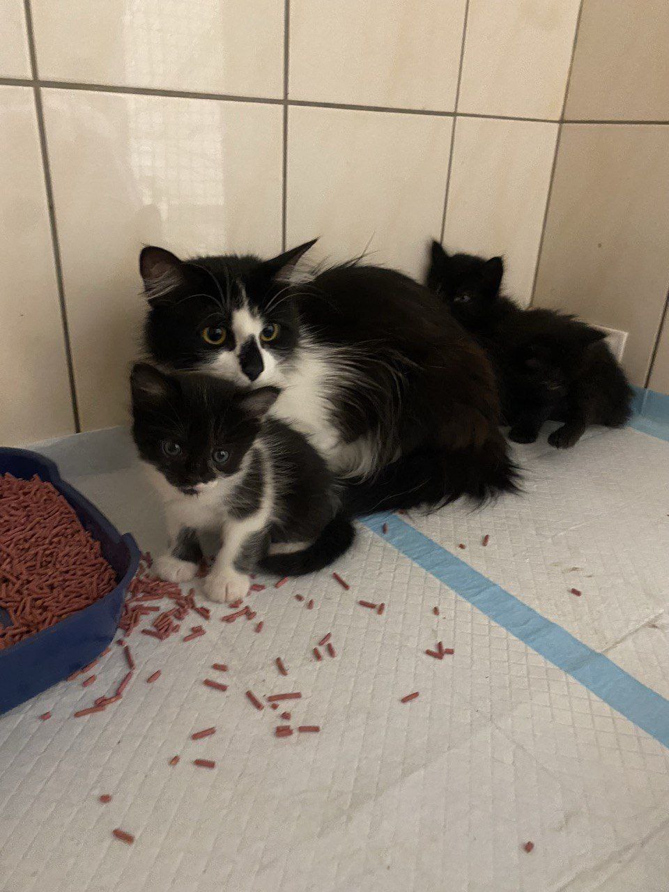 4 кошенят (3 чорних хлопчика і 1 чорно-біла дівчинка)